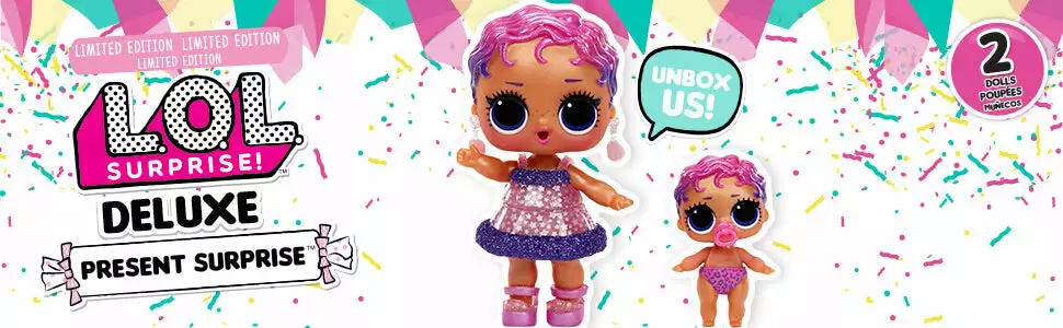 Unbox the perfect gift with the all new LOL Surprise Deluxe Present Surprise that comes with a limited edition Slumber Queen doll and her Lil Sister, Lil Slumber Queen! You guessed it โ this Deluxe Present Surprise has a Slumber Party theme!