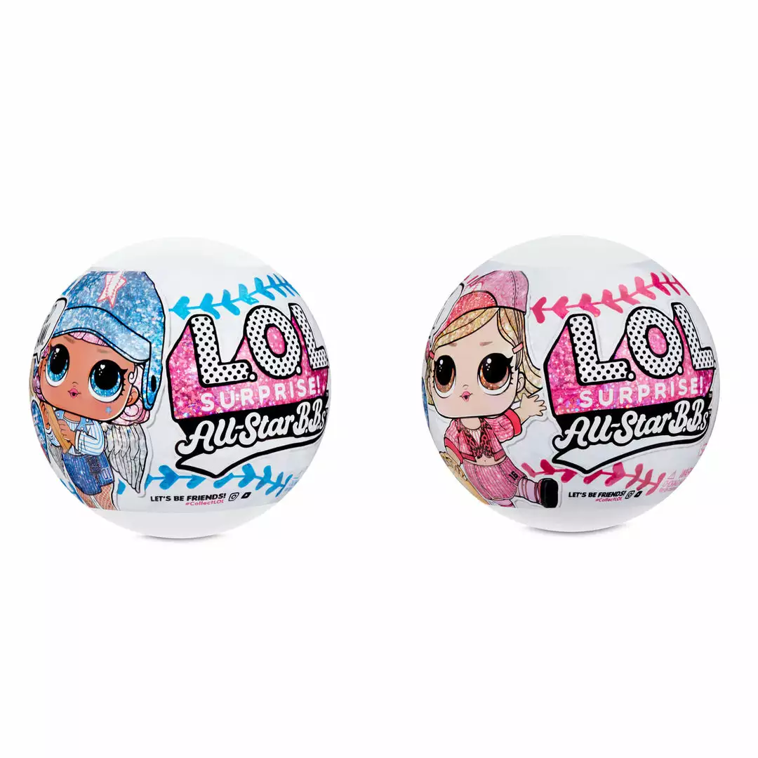 Introducing the LOL Surprise All Star Sports Ultimate Surprise! Find each character from both teams – the Heart Breakers and the Lucky Stars – in one box, which then transforms into a playing field playset for extra fun! Get ready to play ball and unbox 8 surprises in each LOL Surprise All Star B.B.s ball. These fan favorite characters got a sparkly makeover and joined a fierce baseball team, because they all come with all new uniforms and baseball-themed accessories.