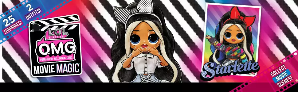 Collect all 4 LOL Surprise Movie Magic OMG fashion dolls and create the greatest film the universe has ever seen! Each doll is based on a different movie genre. Aside from Starlette, the LOL Surprise Movie Magic OMG series has 3 other fashion dolls – Gamma Babe, Ms. Direct and Spirit Queen. Create and remix your own fierce movies as you unbox each doll’s special scene and script!