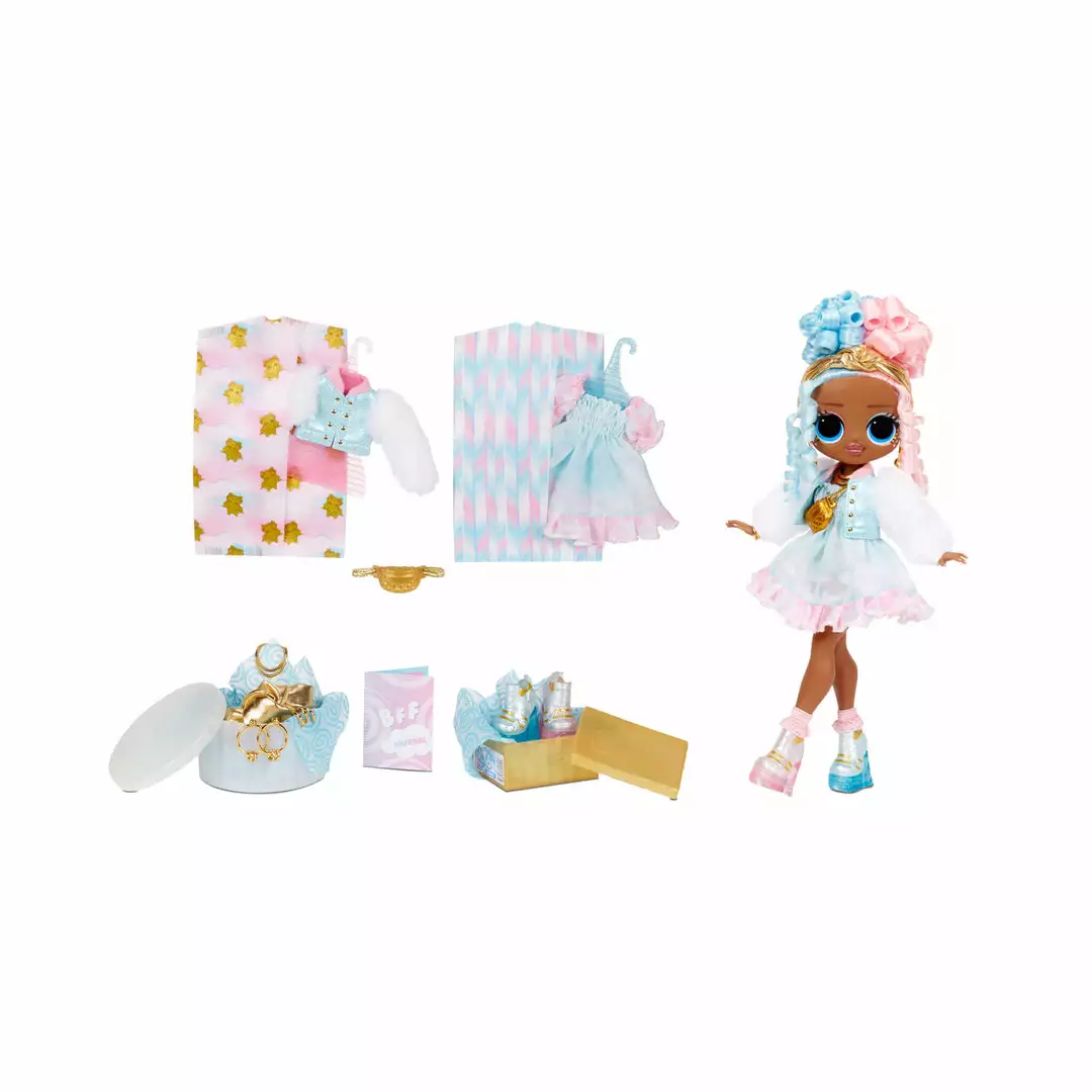 Have her strike a pose to show off her included doll stand. With Sweets, float in the sugar puff clouds & see where the wind takes U!