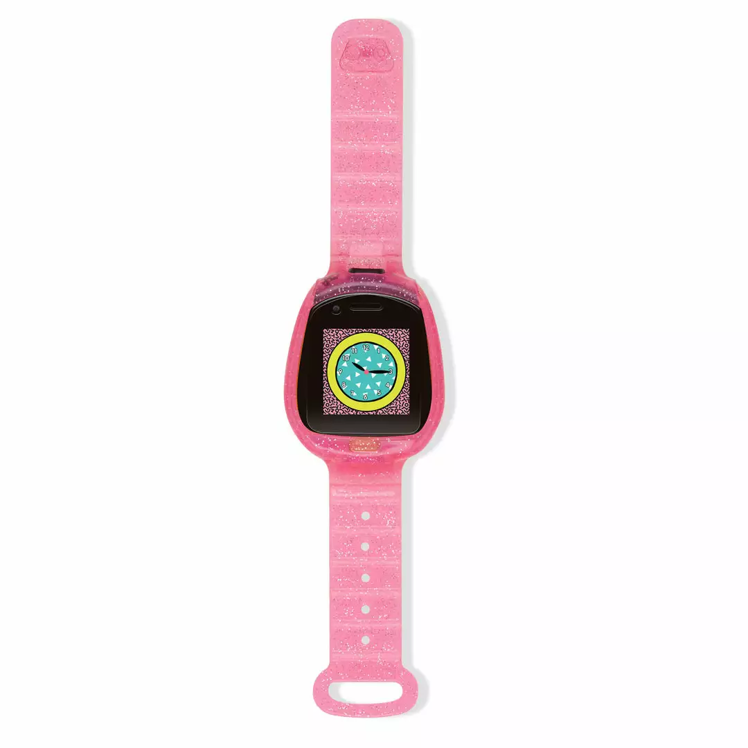 The LOL Surprise Smartwatch, Camera & Game is a fun wearable tech accessory that kids can wear on their wrist using the fashionable, adjustable pink glitter watch band or attached to their clothes using the clip. The clip also converts to a display stand when using as an alarm clock or recharging. Parents love that they can set reminders for their kids, control pairing with other nearby L.O.L. Surprise! Smartwatch, Camera & Game devices, and rely on the durable, splashproof design.