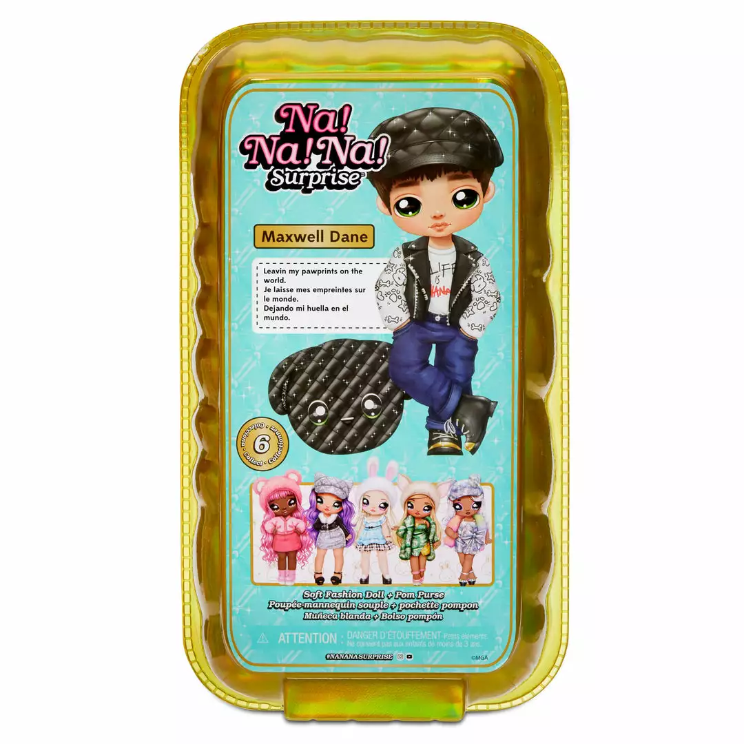 Na Na Na Surprise dolls are the first-ever soft, posable fashion dolls with printed face and fashion details. Now featured in a window box to show off all the quality details, it will be easier than ever to collect them all!​ Maxwell Dane comes with a tag with his name, birthday and a little about him.