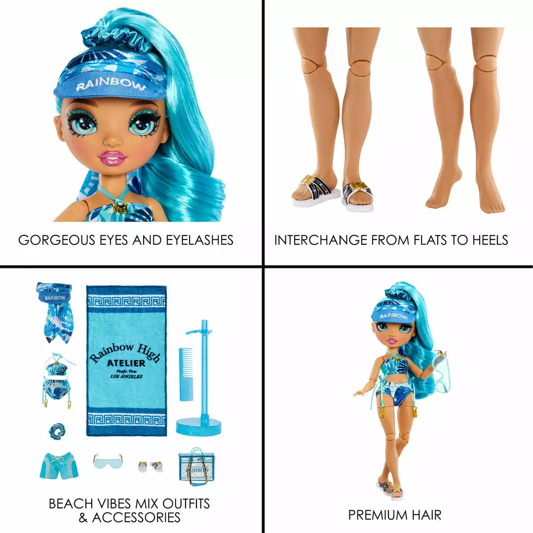 Complete the Pacific Coast High Collection by collecting all 7 Pacific Coast Dolls and matching Pacific Coast Color Change Pool and Beach Playset: Finn Rosado, Bella Parker, Simone Summers, Harper Dune, Hali Capri, Margot De Perla, Phaedra Westward.