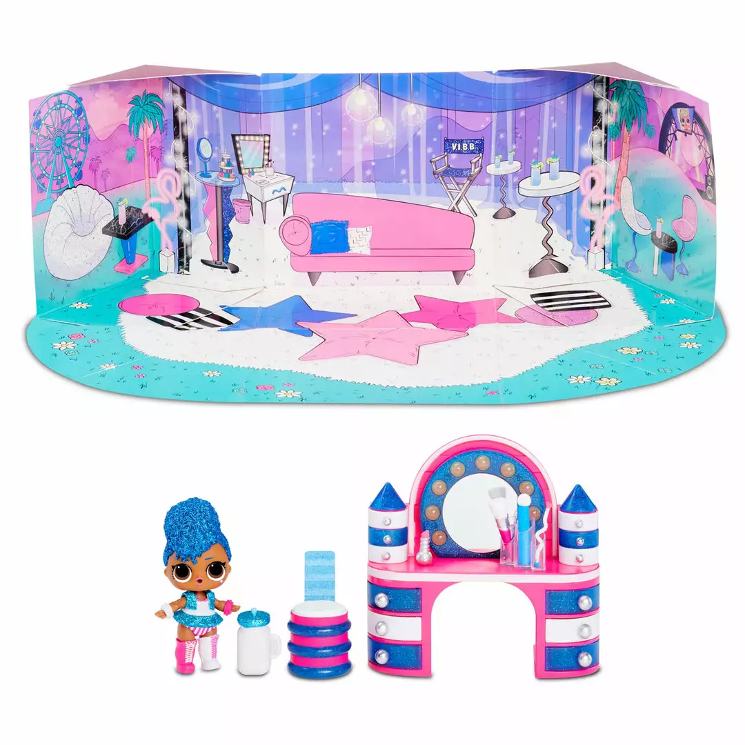 The box folds out to become a fabulous backstage playset for the V.I.B.B. (Very Important B.B.) that Independent Queen is.